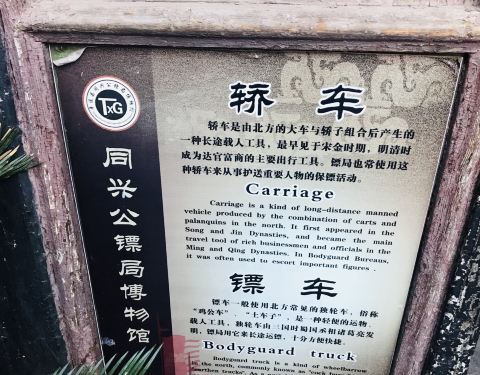实用 建议大家可以将两个景点放在一起参观,先去镖局博物馆了解一些古代关于运镖的基本知识,再去同兴公镖...在平遥古城,除了票号多,另外一个非常兴盛的产业就是镖局,因为银钱总需要人护送。同兴公镖局就是这其中最著名的一家。它位于平遥古城南大街105号,与镖局博物馆距离非常近。可以从古城内直接步行前往。景点的门...在平遥古城,除了票号多,另外一个非常兴盛的产业就是镖局,因为银钱总需要人护送。同兴公镖局就是这其中最著名的一家。它位于平遥古城南大街105号,与镖局博物馆距离非常近。可以从古城内直接步行前往。景点的门票包含在平遥古城120元(分旺季和淡季出售,淡季只需90元)的通票中,无需另外购买。建议大家可以将两个景点放在一起参观,先去镖局博物馆了解一些古代关于运镖的基本知识,再去同兴公镖局,看一看当时的镖局龙头,这样会有一个更为直接的印象。镖局之所以如此有名,除了第一代镖师王正清是当时的武林大师外,更重要的原因是因为镖局内有一块黄色与蓝色镶嵌的“奉旨议叙”匾额,它是当年慈禧钦赐(非常有意思的是,匾额的装饰是凤在龙之上)。 展开 2023-05-16 12:34
