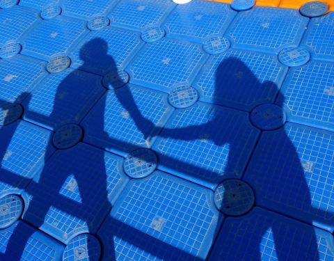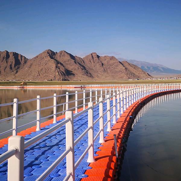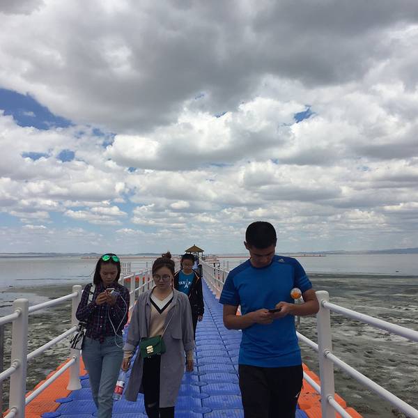 景区的大门是一对天鹅造型,景区内停车场、游客中心、卫生间和商铺等旅游设施一应俱全,但沒有售票。我们从大门进入,经过湖名碑,就走上了湖边浮桥。浮桥由蓝色和橙色的塑料浮筒构成,有几百米长。这是景区唯一看点。周边景色一般,湖水也不清亮,靠岸边的水体发黑发臭。我们在浮桥上拍了几張照片就离开了。景区大门湖碑浮桥浮桥浮桥浮桥湖岸景色 展开