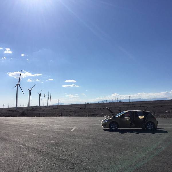 但真美!终于离大风车近了一点!把引擎盖打开,让车子透透气