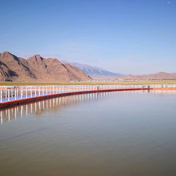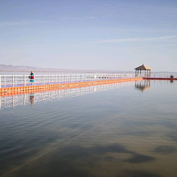 欣赏一下巴里坤湖美景,这个倒影的感觉还是蛮不错的。 一张打卡照吃完午饭,继续上路!终于在差不多下午七点左右到达巴里坤第一个景点:巴里坤湖!巴里坤湖位于巴里坤县城西北边的海子沿乡,距县城18公里,是一个高山湖泊。古称蒲类海(蒲类:古西域国名;另有一传说:古时候有...吃完午饭,继续上路!终于在差不多下午七点左右到达巴里坤第一个景点:巴里坤湖!巴里坤湖位于巴里坤县城西北边的海子沿乡,距县城18公里,是一个高山湖泊。古称蒲类海(蒲类:古西域国名;另有一传说:古时候有一位叫蒲类海的哈萨克青年,因为与山魔搏斗而沉入海底,人们为纪念他而给这个湖泊起名为蒲类海)欣赏一下巴里坤湖美景,这个倒影的感觉还是蛮不错的巴里坤湖上主要是这样一个软塑料浮桥,还是蛮稳的,沿着浮桥可以一路走到湖中心观景。有一点令人诟病的地方是,湖中随处可见图中右下角这种漂浮物,并发出阵阵恶臭!我原本以为是环境恶化,水质污染。但后来结合当地人的讲解和自己度娘了一下,好像是说这些漂浮物是巴里坤湖储量丰富的芒硝矿和盐田,湖水中还含有水生物卤虫( 丰年虫),这些都是非常珍贵的嘞!一张打卡照 展开
