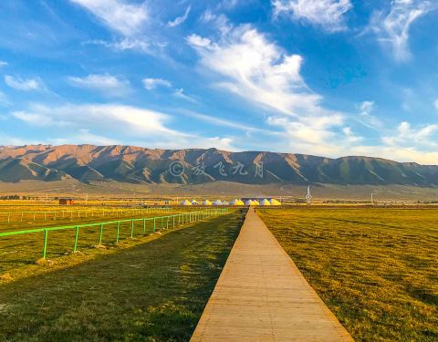顺着长长的木栈道走进去,里面就是巴里坤湖了。 日落很美,草原和远山都很美,就是巴里坤湖不美离开幻彩湖之后,我们直奔巴里坤。 因为天色已晚,所以我们打算先去巴里坤湖看日落。 到巴里坤湖的时候,时间刚刚好。 夕阳正把金色的余辉,洒满大地。 顺着长长的木栈道走进去,里面就是巴里坤湖了。 因为对幻彩...离开幻彩湖之后,我们直奔巴里坤。 因为天色已晚,所以我们打算先去巴里坤湖看日落。 到巴里坤湖的时候,时间刚刚好。 夕阳正把金色的余辉,洒满大地。 顺着长长的木栈道走进去,里面就是巴里坤湖了。 因为对幻彩湖的印象,实在是太好了,所以对巴里坤湖的期待,很高。 结果,很失望。 湖水虽然是蓝色的,但湖面上,荡漾着一层不知道是什么的覆盖物。 整个湖水,臭气熏天。 越往前走,越受不了。 但拍出来的照片,效果还凑合。 回首望去,远处的蒙古包,好像也镀上了一层金色。 日落很美,草原和远山都很美,就是巴里坤湖不美。 不敢停留太晚,太阳沉下去之后,我们就开往巴里坤县城。 路上,正碰到归家的羊群。 哈哈,满大街都是跑动的羊肉串啊。。。 展开