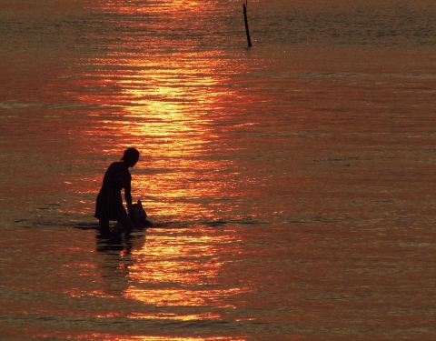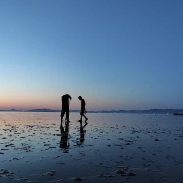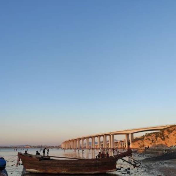 有时候有退潮的,很多人都去赶海,孩子小时候还带他去,抓蚬子。孩子喜欢玩沙子