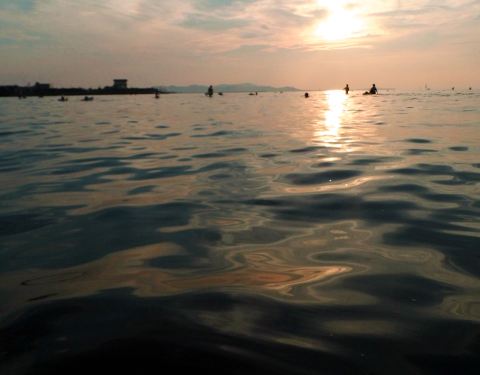还可以吧,现在水都不太干净。有时候有退潮的,很多人都去赶海,孩子小时候还带他去,抓蚬子。孩子喜欢玩沙子。快涨潮了就往岸上跑。