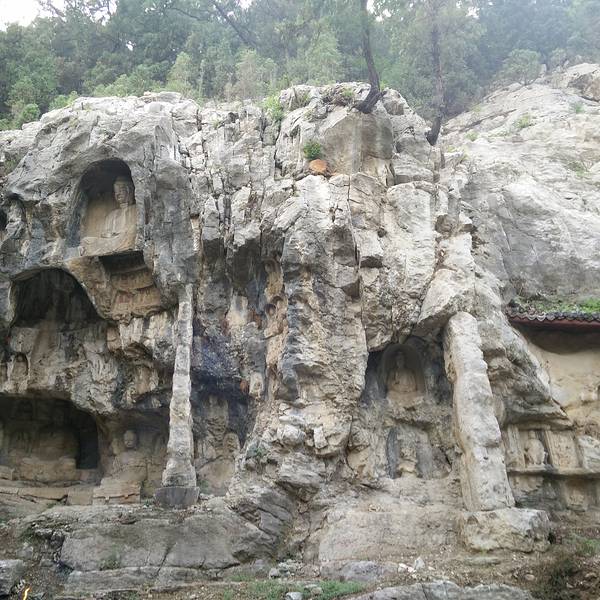 位于白虎山腰的石壁上,约60多米的石壁上有100多个大小石窟,现存佛像210多尊,是山东唐初造像遗存中的珍品。
