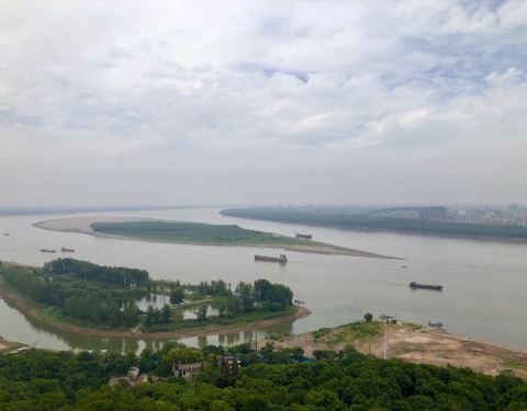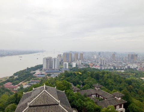 景观非常震撼。沿着山路上去,就到了长江边上,登上武昌楼,可以看到浩浩荡荡的长江一路向东流去