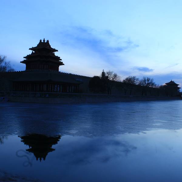 紫禁城四个角上的四座角楼,看似不起眼,实则承载了我国古代传统木结构建筑的高技艺。内部结构由九梁十八柱七十二条脊构成。这样复杂精巧的建筑,仿佛只应天上有,使得紫禁城角楼的建造还流传下来一个传说。当时明朝的永乐皇帝朱棣特意要求负责建造紫禁城的大臣,要在宫城的四个角上,盖四座样子特别美丽的角楼,每座角楼要有九梁十八柱七十二条脊。这位大臣到了北京以后,就把知名建筑厂的师傅们都叫来,跟他们说了皇帝的旨意,并限期三个月,一定要按期盖成这四座符合要求的角楼。这可难倒了这些老师傅们,正当大伙在一筹莫展的时候,有一位木匠师傅见到一位老人正挑着很多蝈蝈笼子叫卖,他就买了一个来解闷儿,没想到,仔细一看,这重重叠叠精巧的蝈蝈笼子,不多不少,恰好是九梁十八柱七十二条脊。于是紫禁城角楼便由此设计出来了,据说那位老人,就是显圣的鲁班。紫禁城角楼除了起到装饰作用以外,它与城墙、城门楼及护城河同属于皇宫的防卫设施,功能相当于瞭望塔,居高临下,便于侦查敌情。拍摄紫禁城角楼的好地点就是护城河外的西北角,故宫西北角楼已经过修缮,黄色琉璃瓦顶和鎏金宝顶在阳光下熠熠生辉,衬着蓝天白云,越发显得庄重美观。