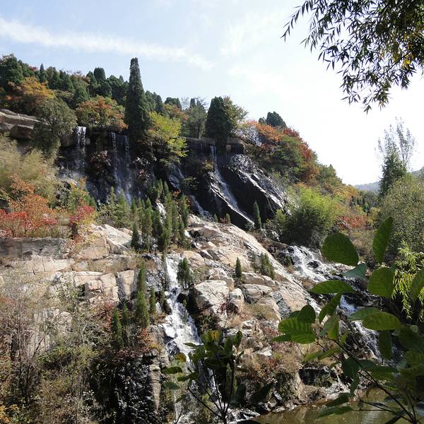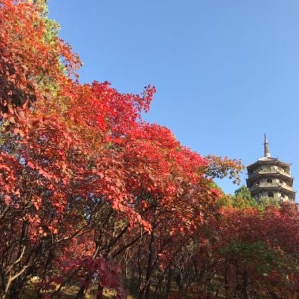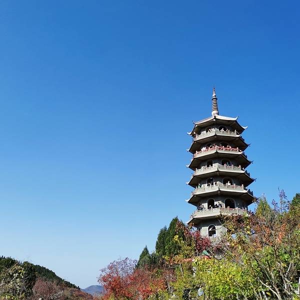 金骆驼 这是秋天的景色,那个就是塔,上面风景不错。两个我最爱的东西在一起炖,好吃极了。建议自驾过去好像很多城市有都红叶谷,济南的这个是个新建的景点,属于南部山区,4A级景区,
