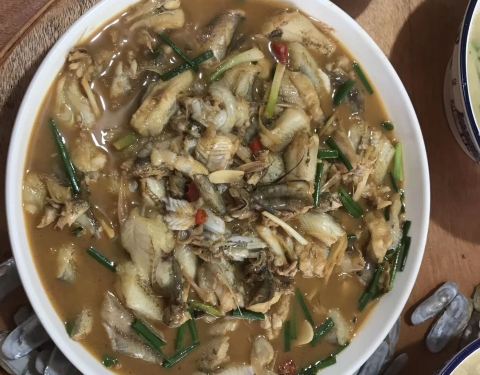...了这些,好几样都是刚捞上来的,叫小吃店加工,每个菜端上来秒光,鲜得大家一边大吃特吃一边直夸好吃