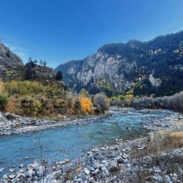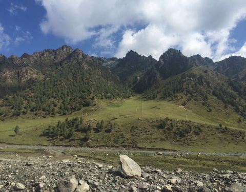 首先声明天祝(小)三峡并不是一个向游客开放的旅游景点,也就是说来这里你找不到进入景区的大门,找不到停车场,找不到饭馆。地图导航天祝小三峡将我们带到了金沙峡,下车后沿着河边散步,旁边就是祁连山了,景色真的很不错,不过现在国家保护祁连山整个都封山了,进不去的。走了十几分钟后到朱岔峡水电站就不能再走了。来这里要准备好食物,可以在树林里野餐,找饭馆是没有的。