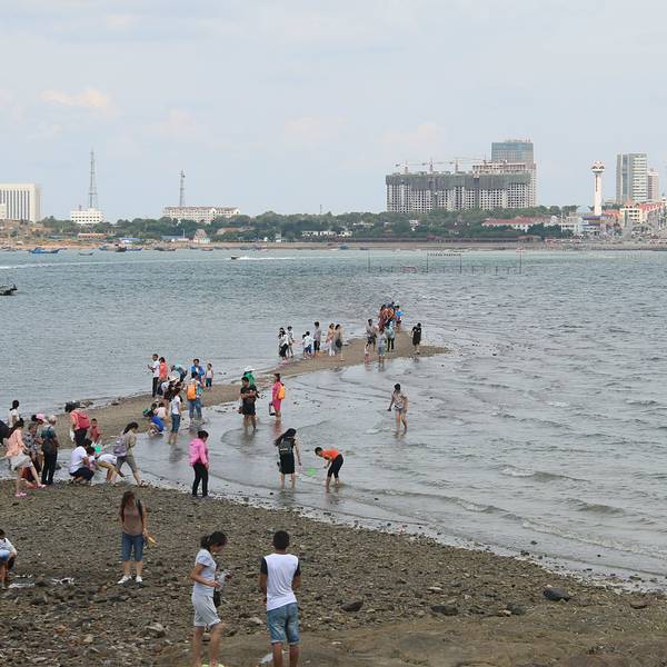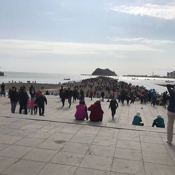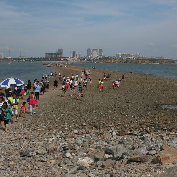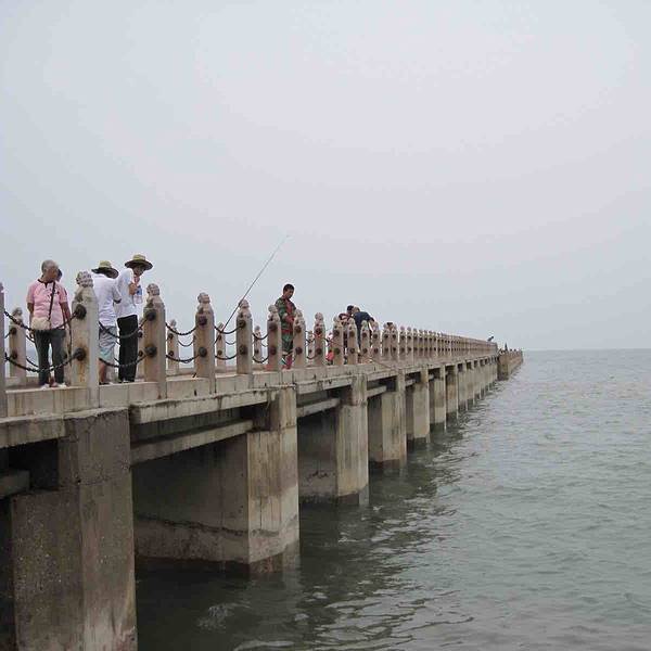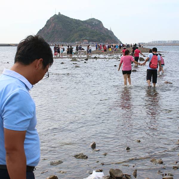 实用 如果没有提前准备好防水鞋的话也最好不要淌水,路面石子非常搁脚,不是鹅卵石,石子棱角非常尖锐,一...去锦州一定不能错过的一站,以前就听说锦州的笔架天桥天下一绝,这次去见识了一次果然没有让我失望,这个会随着潮涨潮落而若隐若现的天桥绝对是一大特色,是在其他地方看不到的。不过正因为自然赋予了我们这一奇...去锦州一定不能错过的一站,以前就听说锦州的笔架天桥天下一绝,这次去见识了一次果然没有让我失望,这个会随着潮涨潮落而若隐若现的天桥绝对是一大特色,是在其他地方看不到的。不过正因为自然赋予了我们这一奇特景观,我们也要尊重自然的规则。满潮的时候桥面是看不到的,潮水褪尽之后桥面才会显露出来。由于每天涨退潮的时间都不一样,所以去之前一定要查好每天的涨退潮时间。根据我去的经验,每天上午10点到11点一般是桥面露出最高的时候,所以大家一定要上午去,去了之后门口有指示,大家根据当天涨退潮的具体时间再安排具体行程,还有就是如果风大的话涨退潮的时间都会错后。还需要注意的是大家最好赶在大潮的时候去,因为听当地人说现在笔架天桥受锦州港影响,路况已经远不如从前了,因此小潮的时候桥面是不能全部露出来的,甚至会有及膝深的汹涌海水,那样淌水也是很危险的。每个月阴历十六左右是最大潮,初一左右是最小潮。天气冷的时候是不能淌水的,海水很凉,风大的时候也很危险,因为海水很急。如果没有提前准备好防水鞋的话也最好不要淌水,路面石子非常搁脚,不是鹅卵石,石子棱角非常尖锐,一定要注意安全。如果赶上涨潮也没有关系,两岸有快艇可以往返山门和山脚下,单程票价15元,还是挺划算的。 展开