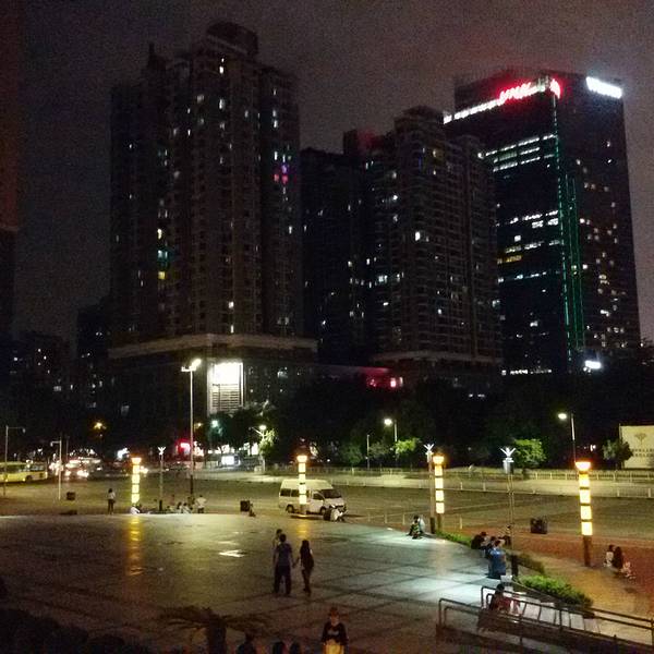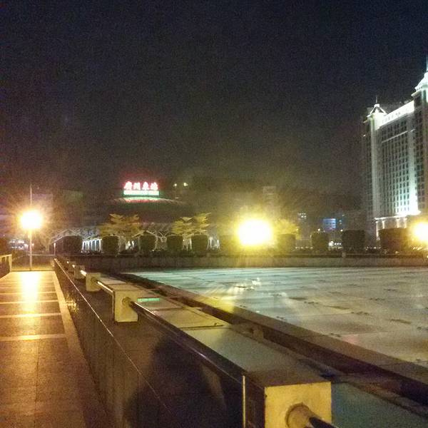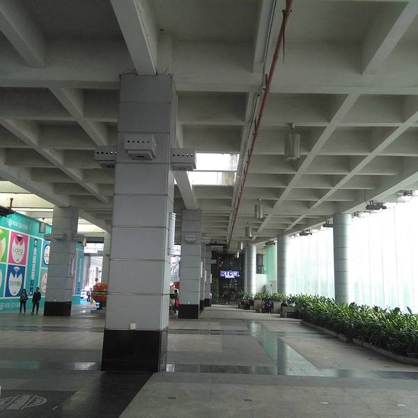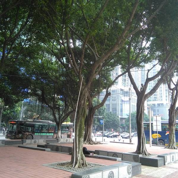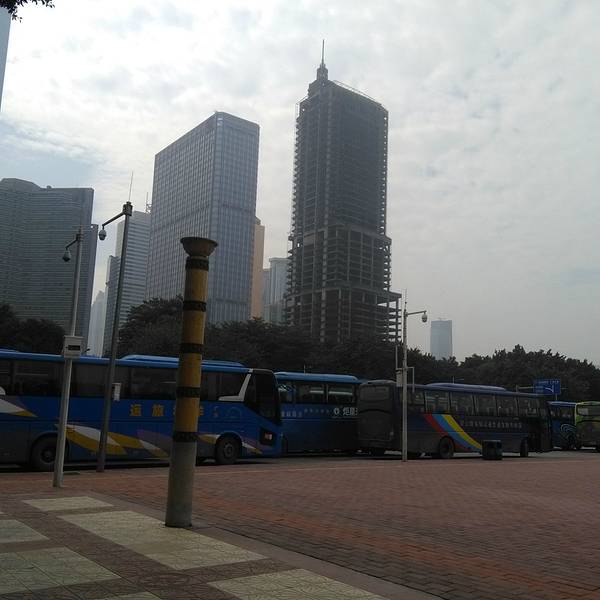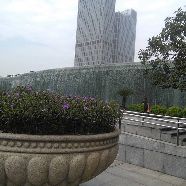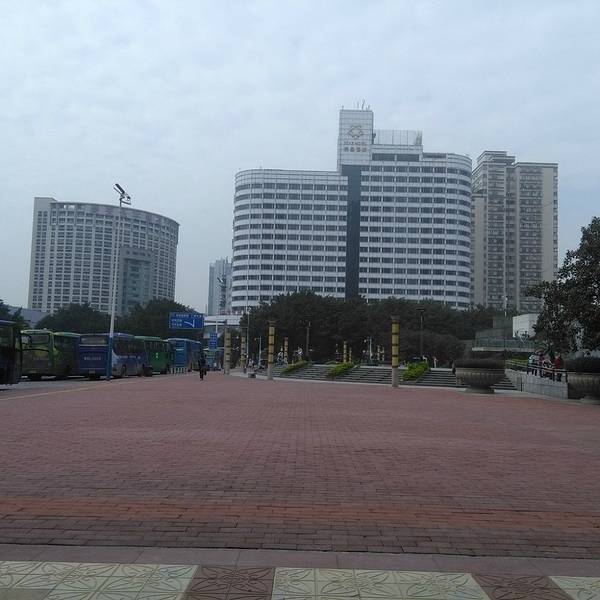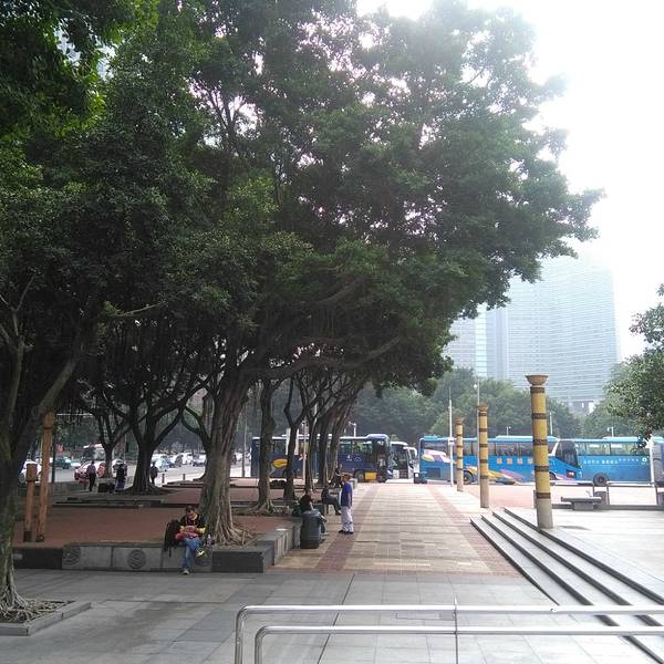 天河东站绿化广场位于广州市新城市轴线上,占地面积4.7万平方米,于1998年9月中旬动工,1999年7月1日正式完成并交付使用。广场中央绿地2.6万平方米,铺种马尼拉草18315平方米,其中有6000平方米种植标志性的纹样,分围种植1300平方米的福建茶绿篱。中央草坪四周设有41个花池,24个栅池,24个花钵,广场绿化率达82%。仿南越王墓制式花坛,遍植各种岭南花卉。 这里的亮点是绿化广场北面的东站水景瀑布,市民称之为“广州黄果树”。水景瀑布飞流直下,宛如城市中轴缎带,被评选出为“羊城新八景”之一。 广场的南面是广州第一高楼中信广场。中信广场的主体建筑中信商业大厦是一栋甲级智慧型的商厦:主楼大堂入口处卓尔超凡,大堂楼高17.7米,配衬着优质花岗岩石,显得格外富丽堂皇。除主楼外,两翼还有艺术对称的两栋38层副楼以及5层裙楼(为中天购物城)。平面看来,主楼四方形,中天购物城的5层裙楼,呈半圆形,左右副楼则像电视卡通片人物伸出来的左手臂和右手臂。