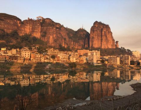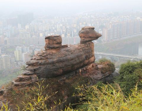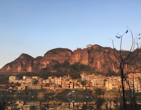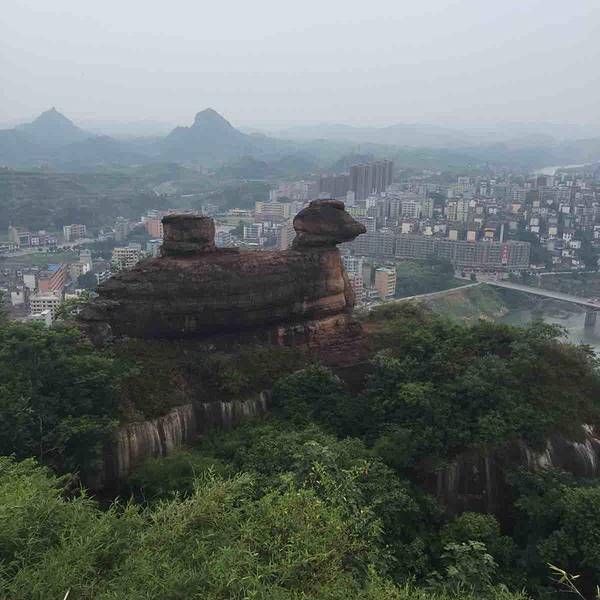 金鸡岭类似丹霞山的地貌,却少了点神韵。陡峭的墙体耸立在金鸡石对面,却也别有风彩。