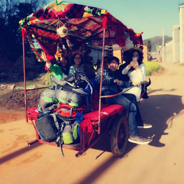 阳光灿烂的照耀着大地,如同我们此时兴奋的坐着牛车~~这比喻貌似不太好。年轻真好,可以肆无忌惮的任性