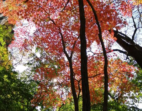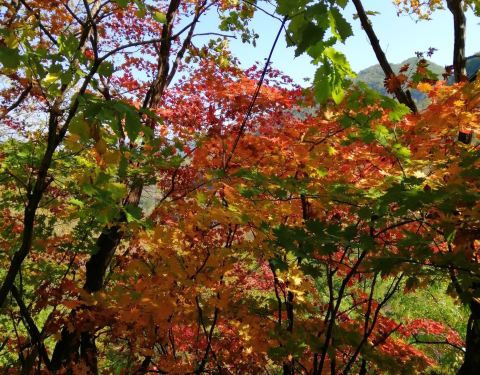 今天继续游青山沟,遗憾的是碰上阴天,没有蓝天白云的映衬彩叶对拍照技术要求高了,但我们在现场还是...今天继续游青山沟,遗憾的是碰上阴天,没有蓝天白云的映衬彩叶对拍照技术要求高了,但我们在现场还是大饱眼福,满眼都是色彩斑斓。