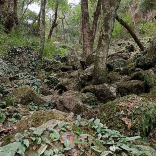 原始森林,杂草丛生,石头上还长有苔藓,确实很原始