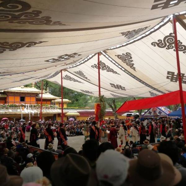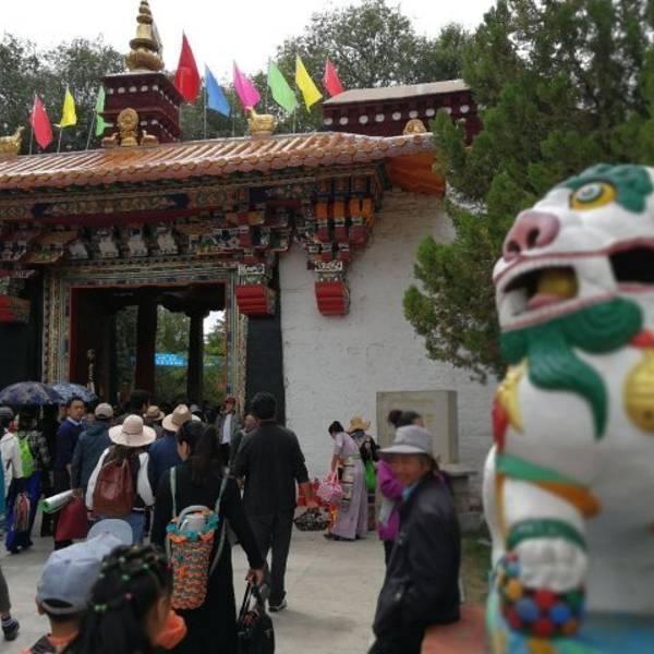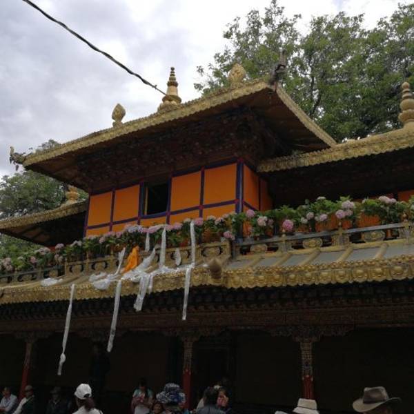买了门票(60元,里面动物园门票10元),排队进了充满节日气氛的罗布林卡,首先去看了...赶上雪顿节的第二天来到了罗布林卡,还没到安检口就开始堵车,索性步行至安检口,在罗布林卡外已经坐满了庆祝雪顿节的人群。