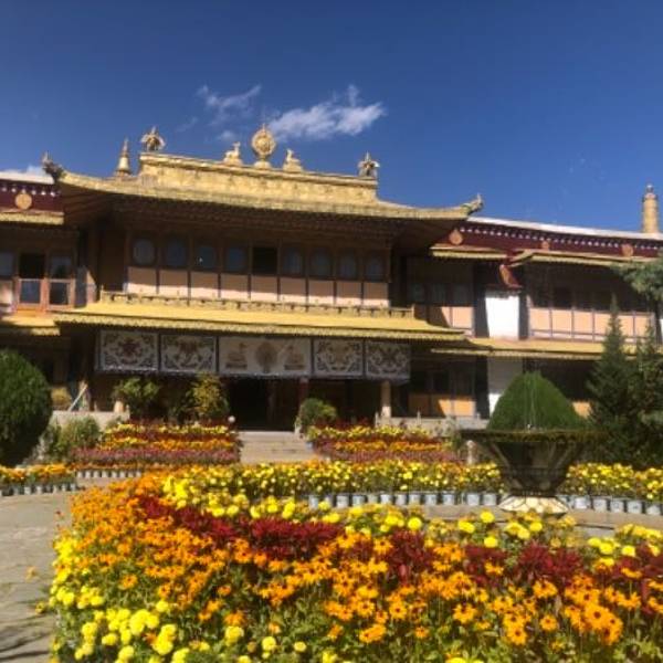 去过博物馆,来到罗布林卡,蓝蓝的天空下,花团锦簇,景色秀美。