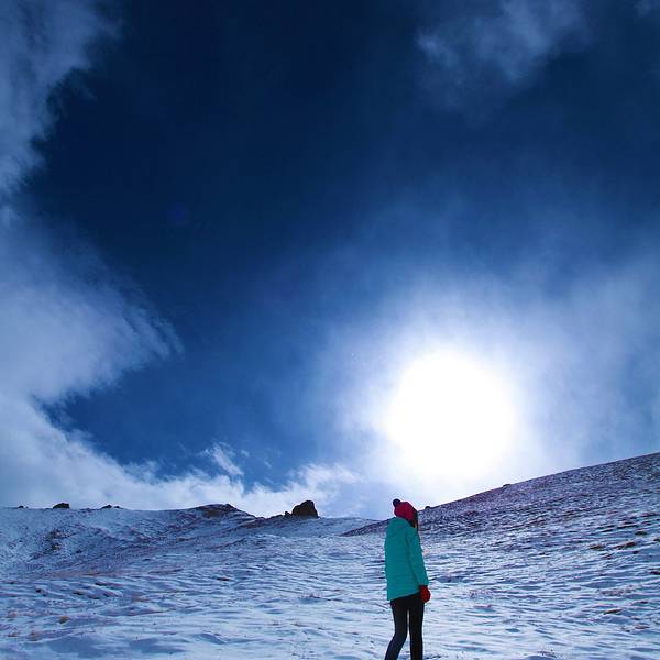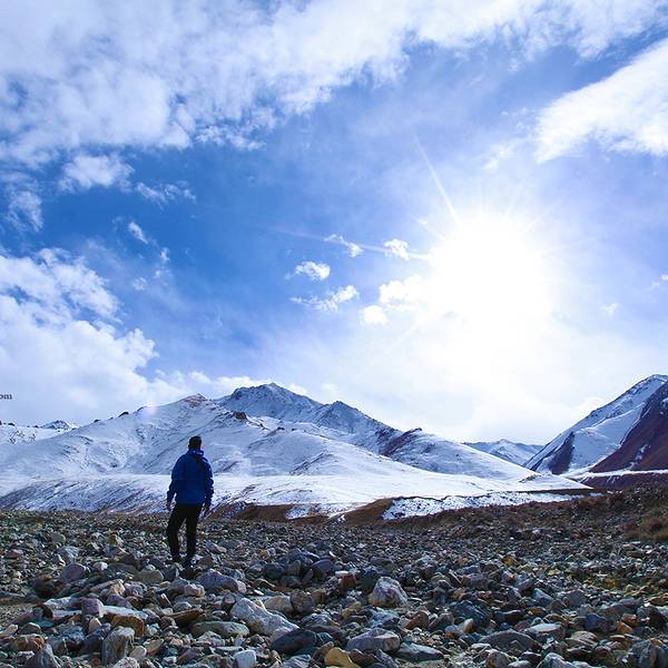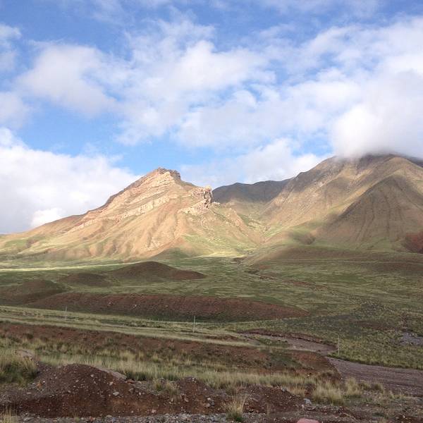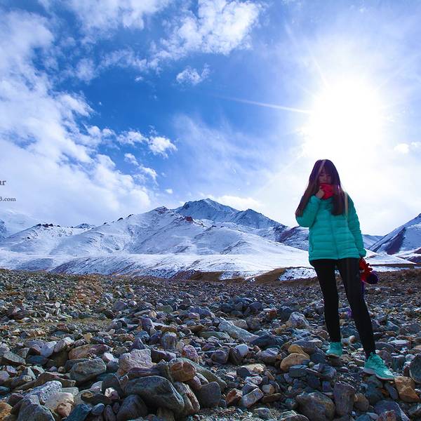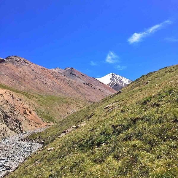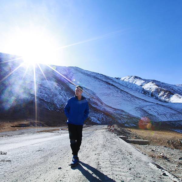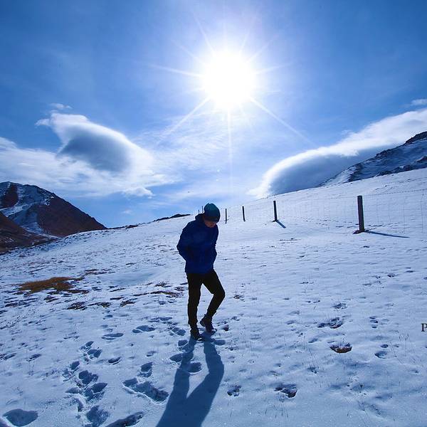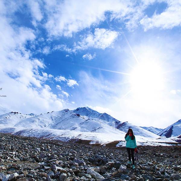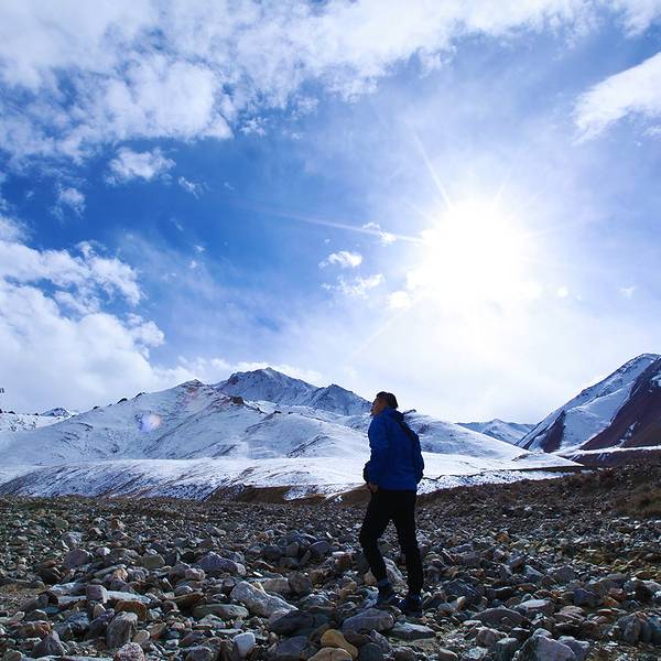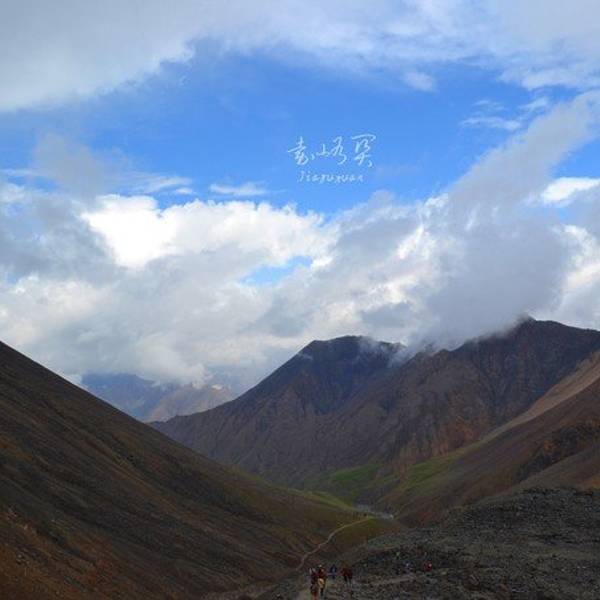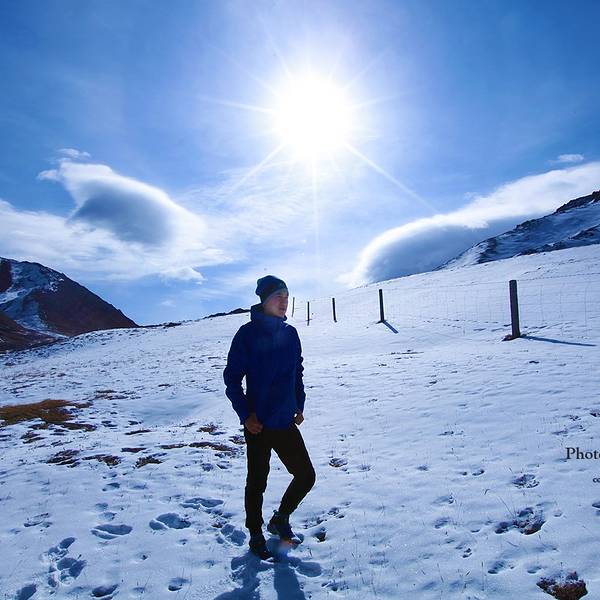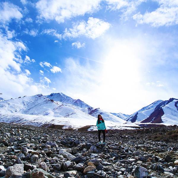 师傅人不错,主动提出,带我们去周围几座山峰看看。ok那就走吧,其实一路过来的风景已经震撼住了我们的心灵,及时不爬4600m的主峰,我们也不觉得有遗憾了。师傅也是蛮拼的,这种石头路,居然一路开进来,真担心轮胎会被扎破。老公一路就在夸自己这鞋怎么怎么赞,不过说实话的确,登山,玩雪和之后的沙漠,全靠它了吼吼,太阳出来了,因为这里离景区大门不远,山上有一座太阳能手机信号站,这里居然有信号哦,哈哈,果断朋友圈刷屏和好友们分享起来了山脚的草地上,有一户牧民,他们家的狗老远看到我们就开始狂叫,我们以为是藏獒,生怕他会冲过来,把我们吓的不轻,不过还好,他看我们没有继续靠近的意图,也就作罢了除了爬的快一点会有些喘以为,我似乎没有然后不良的高原反应啊,还是值得庆幸的,老公说他有点想吐,但不是因为高原的关系,而是一路上车实在颠的让他受不了这2张好喜欢哦,太阳的光芒正好被一片云遮住了,有没有感觉像在外星球,哈哈