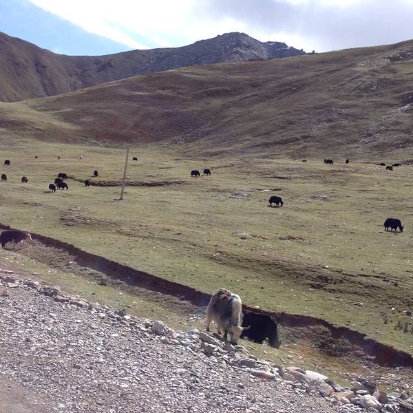 路程较远 因为连接祁连山脉 路上风景美呆了 遍地牛羊 还有屎…盘山路不好走 需要考验司机技术 司机停下来三四次让我们下来玩 到后面都是高原了3000米的样子 跑起来有点感觉的 司机还帮我们拍全景照片