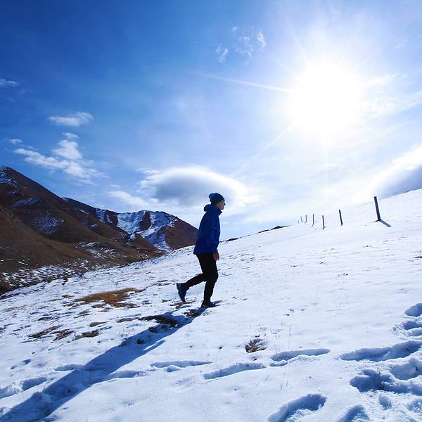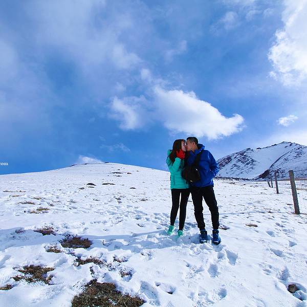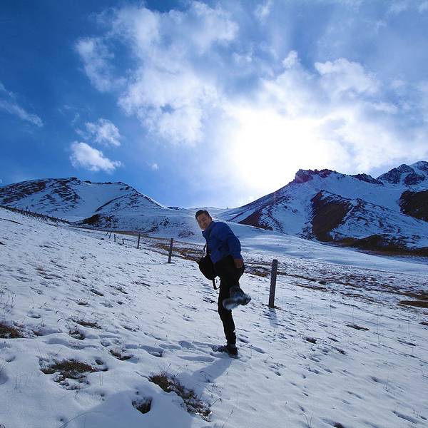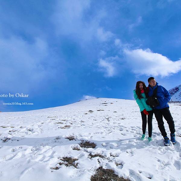 才开出市区不久,就来到了一条几乎没有人的公路,日出的阳光洒在路面上实在美的不行,果断和师傅提出停车拍照的要求,师傅非常地道,特意开到一片没有电线杆的路段,一顿猛拍开始了,哈哈清晨的嘉峪关,非常冷,基本在5度左右,加上凛冽的寒风,保暖工作一定需要做到位哦。雪山上更是天气变幻无常,一会晴天,一会冰雹,所以选择正确的出行装备太重要了日出的阳光非常柔和,正是适合拍逆光照的时候。哈哈,男主全套装备亮相,这家伙里面就穿了一件短袖,我也是服了他了。我拍逆光的技术也还不错哟,嘿嘿一路上可以遇到很多放羊的牧人,每次我们停下车拍羊群的时候,牧羊人都会热情的过来打招呼,问你们去哪里啊,这种感觉真的很棒,旅行不就是应该这样吗,景点什么的真的不那么重要,一路的景,人,物,事,才是旅行真正的精髓。进入山区前,最后的一片草甸,草已经开始泛黄,整片的金色,美不甚收去七一冰川的一路基本都是这种石路,这一段已经是不错的了,之后的路况更加恶劣。轿车什么的最好还是不要开这个路,底盘随时有被刮坏的危险哦。师傅说这条路,他每年都要遇上好几辆翻到沟里的车,这个路很容易打滑。用卡片机偷拍一张老公辛苦创作的场景,拍照片果然是个体力活啊过一个山口,一大片雪山映入眼帘,此情此景,让我们南方的孩子实在兴奋的不行。停下来拍照那是必须的,不过像我们这么个拍法,不知道到几点才能到七一冰川了,哈哈。师傅到挺淡定,跟着我们一起下来各种拍,哈哈真恨自己没有一个长焦啊,广角和定焦完全无法呈现出眼前震撼的场面个啊说实在的,真有一种在瑞士的感觉啊,哈哈。当年瑞士雪山上大雾弥漫,什么都没看到,一直感觉很遗憾,不过来过这里,什么遗憾都没有了。卡片机拍得沿路风光,一个字,赞开过一个山谷,刚刚远处的雪山,转眼见已经在我们角下了,太阳的高度也正合适,看到一片有雪的山坡,又忍不住下去一通狂按了,哈哈眼前的美景真的无法用语言形容,我只能用仙境来形容了别看只是个小小的山坡,由于海拔4000m,加上我们太过兴奋,一顿狂爬,瞬间感觉呼吸急促,心跳加快,明显缺氧的节奏,高原果然不是盖的。于是我们稍作休息,调整一下呼吸,恢复的速度还是很快的。只要不要突然发力加速,匀速的登山,其实并没有感觉非常吃力。山上的雪有的地方已经很厚了,可以盖过整双鞋,所以防水鞋必须要有。在上海还从来没有踩过那么厚的积雪,脚感一级棒,哈哈没开几步路,又要求师傅停车,哈哈,师傅您没被我们逼疯了吧司机师傅看来已经开始慢慢习惯了我们的节奏和偏好,主动帮我们寻找积雪厚的山坡了。这个山坡真的太美了,雪也非常厚实,远处的山峰上还露出些许草甸,太美了真的好瑞士的感觉啊,这里的雪山相比东北的雪山,由于海拔高度高,少了很多高大的树林,感觉更接近于喜马拉雅山和阿尔卑斯山的感觉。山上开始起风了,刚刚还没什么感觉,瞬间感觉脸就被寒风挂的刺痛了。雪球没抛好,全掉头上了,嘿嘿三角架终于又发挥作用了,2个人玩打雪仗乌云开始过来了,山上的天变化好快,一旦没有了阳光,温度瞬间感觉下降10度都不止海拔4020m,堆个小雪人纪念一下吧,爸爸妈妈,当然不能忘记我可爱的儿子,爸爸妈妈算代你来过咯哦,嘿嘿,等你再大一点,爸爸妈妈要牵着你的小手,走遍全世界啊哈哈,小雪人里,儿子好像和妈妈比较亲热哦起初以为是只藏獒呢,司机师傅说这只是只牧羊犬,不过样子看上去很凶啊开到下一个山谷,又看到了成群的绵羊,不过他们很怕陌生人,还没靠近过去,就开始逃了