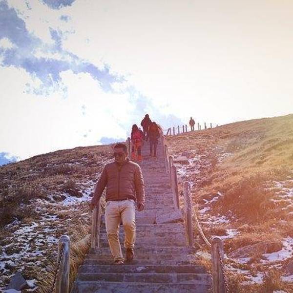 我还是经常锻炼啊夜跑什么的 但是在山上走了20米就喘的不行了 口罩根本带不住 呼吸困难…一开始我们都是20米一休息 后来50米一休息 再后来我就适应了好多最后阶段就一口气登顶了 千万不要速度不均匀 匀速前进就好 就算行李很重 慢点走也能走上去的 一路上不要忘记欣赏风景哦 山顶蛮冷的 风也大 小心防寒 下山会好很多 胖子需要注意…我们寝室的胖子这一路还是挺吃不消的 不过也都跟我们走过来了