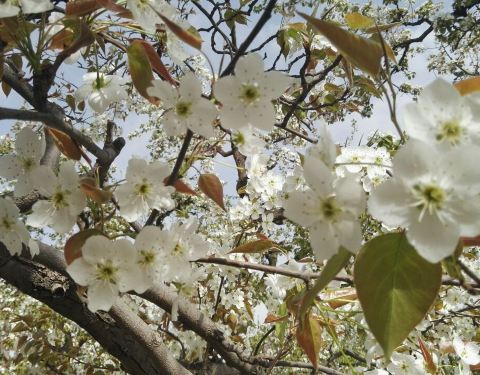 什川梨园的景色以春秋两季最佳,春到什川梨花迎风怒放。金秋时节,霜叶火红,层林尽染。金黄的梨子挂满枝头,摇摇欲坠。