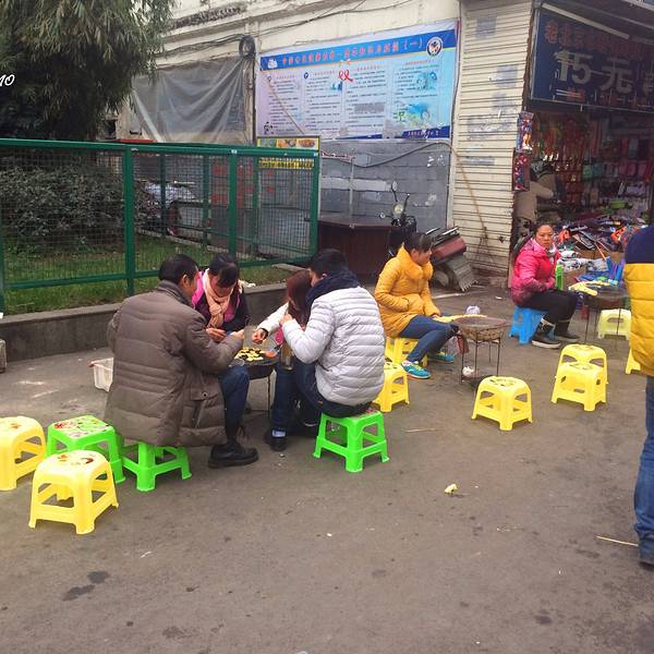 出了公园看到路边小摊很有意思,应该是坐下来吃手撕豆腐的地方。之前在网上查到如果要去贵阳看夜景的话就去仙人洞,离市区不远的一座小山上。这里有公交直达,不过下车后要走很长的街道才能到。到了以后看大门关...