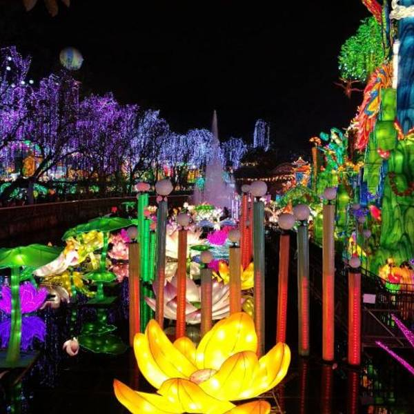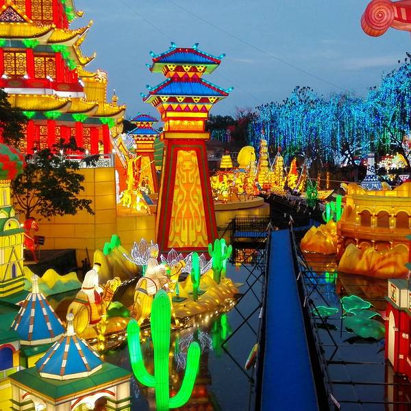 每年著名的恐龙灯会节也会在这举行,里面会场很大,而且各种各样的灯会都有,人物,亭台楼宇都很漂亮...