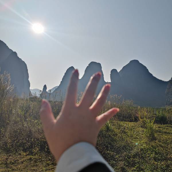 沿着高速直奔广西,天逐渐由灰蒙蒙变成了一片湛蓝。因为羊了个羊而郁结了大半个月的心情也都放晴了,景区大小还好,不过,我们是谁!必须迈开步子松快松快!走通景区后,我们朝着当地的村落前进,沿着正在建设中的公路和村里的土路绕着附近的山走了一圈大概12公里吧,活动活动筋骨。景区内大石柱下的天然溶洞像不像大拇指发育不良滴五指山(✪▽✪)村子里迎着暖阳唠着嗑的下午时光,舒坦!美美的日落西山
