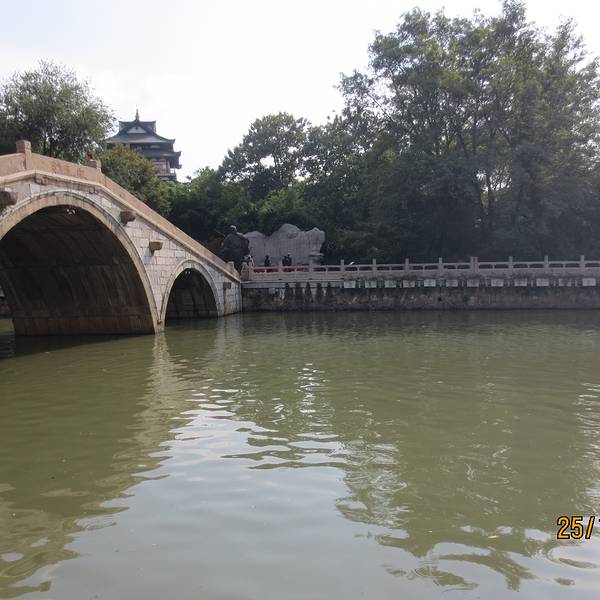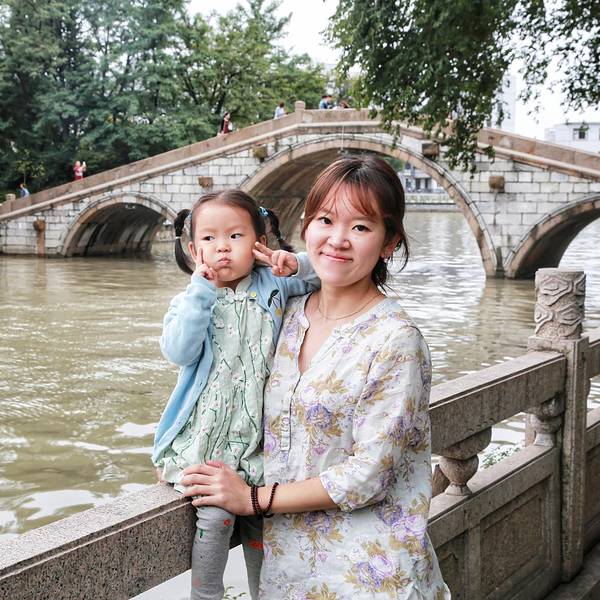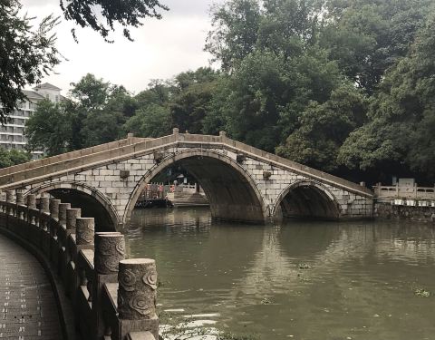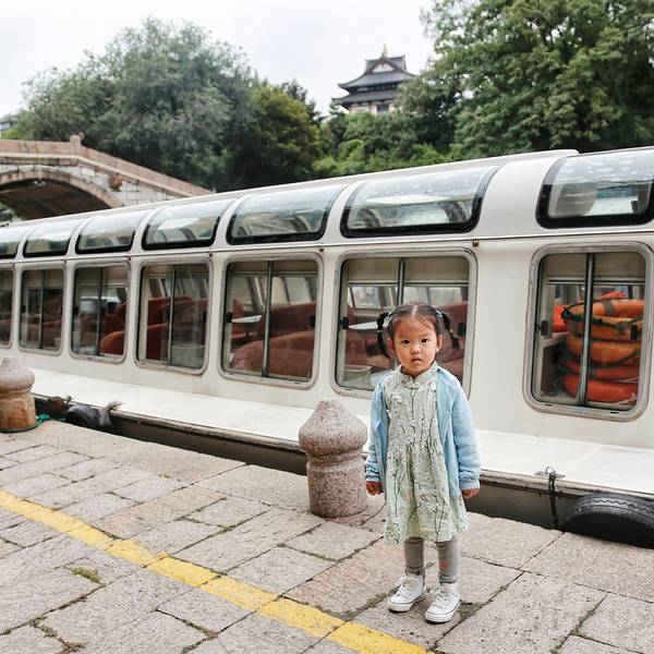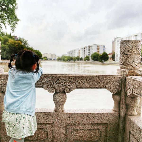 圆嘟嘟的小脸,在想什么呢?我们家暖暖超级喜欢被抱,这里是难得让她自己走了一会。以充满年代感的斑驳石墙做背景,和这个小小的人儿形成对比。公园里面的水域仅此一处,也是被绿色环绕,一圈湖石,玲珑通透。中式园林顶顶讲究山(石)水的比例,诺大的公园里,水就只有这么一点,乍看之下似乎是不合比例。实际上独具匠心的造园者巧妙地将园外古运河的水“借”进园内,充分体现了园林艺术中的“借景”手法。整个公园由一个三面环水的半岛和古运河中的半月岛组成,运河之水也成为公园景致的一部分。从这个角度看过去,水面开阔,河水与白云都是不舍昼夜的流淌,她趴着看了好久。看着她凝视的背影,不知道暖暖此刻是否与我有一样的感慨。御码头,这就是乾隆皇帝当年停泊的地方。有两种船可乘,一种是全玻璃封闭的观光游船,一种是仿画舫。做攻略的时候,看到有“ 三河 三园“的路线,若是不赶时间,还可以选择从这里乘船去恐龙园,应该也别有一番风情。小朋友的点真的很难懂,今天一照相就捂脸不配合的暖暖,在这里竟然主动要求照相 。1986年拓宽京杭运河 常州 市区段,因舣舟亭临河处改道,形成了一个运河环抱,形似水中月亮的“半月岛”,还将常州最古老的三孔石拱桥——广济桥整体迁移到这里。岛上围绕缅怀东坡先生的主题 新建 和修复了很多景观。然后又遇到一个友善的小姐姐,小朋友的世界好神奇,暖暖走过去看她玩了一会,然后跟在小姐姐身后跑来跑去的,然后就玩到一起去了。数一数,有多少栏杆吧,挨个蹭一遍,我为衣袖心疼30秒。其实进入公园之前就已经被这座桥美到了,就在路边,却仿佛是另一个朝代另一个时空。有老者在钓鱼,闲适无比。