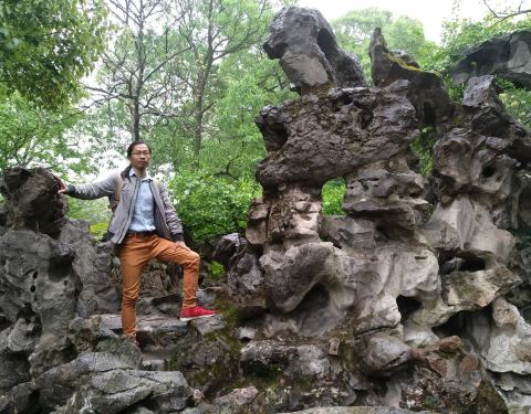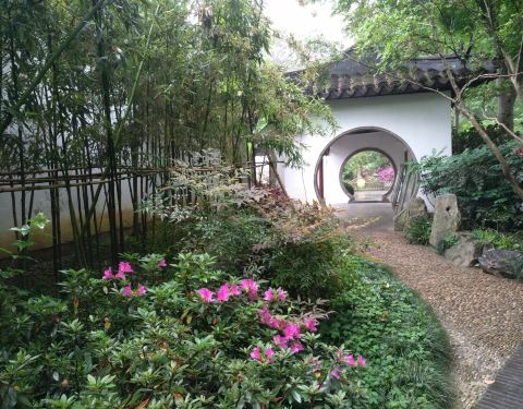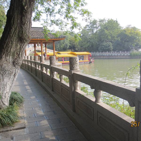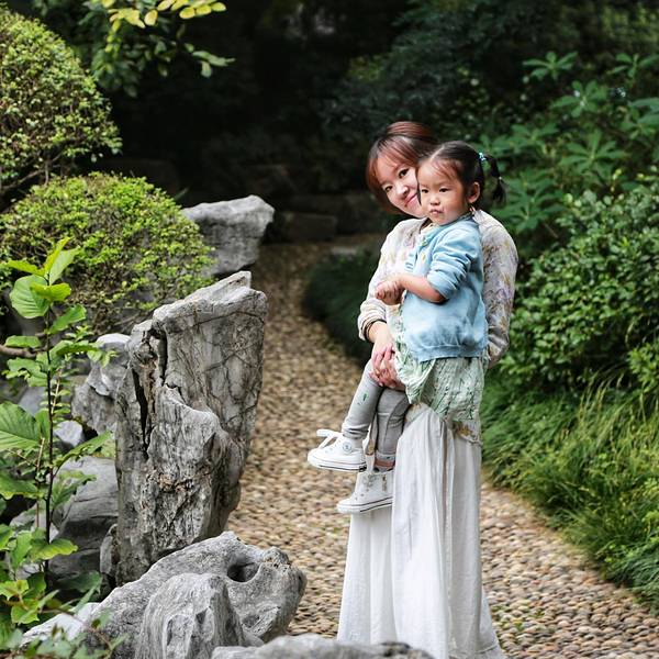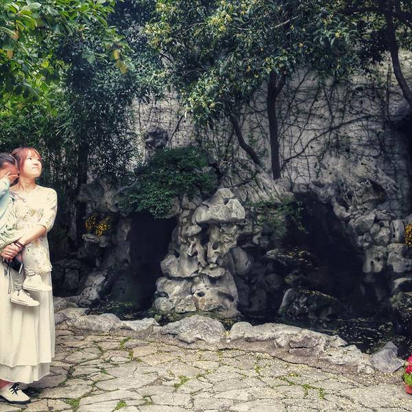 湖石上满是绿色的青苔,暖暖不知,我需得牢牢拽住她。临水看落花,青丝绕指转。公园很大,小路两旁是浓密的绿植,空气也格外清新,几块 太湖 石点缀其中,平添几份灵气。逛累了,坐在这样的小石凳上,深深呼吸,用这高浓度的负氧离子洗洗我的肺吧。还有几颗古树,树皮上布满青苔,我让暖暖摸摸,这是最直观的对岁月的感触。粗粝的手感和她平 常熟悉的毛绒玩偶、光滑的塑料玩具大大不同,所谓旅行是最好的教育,大概就是指这些吧。我们来的不巧,舣舟亭围起来大修呢。这亭子东坡先生和乾隆皇帝都曾在此停过船。从舣舟亭拾阶而下,角落里的花开正艳。