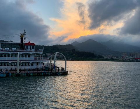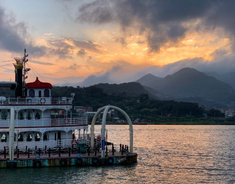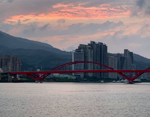 在此能近距离欣赏朱红色的关渡桥,也能租脚踏车沿着水岸兜风,有时间还能搭乘蓝色公路,悠游淡水河。