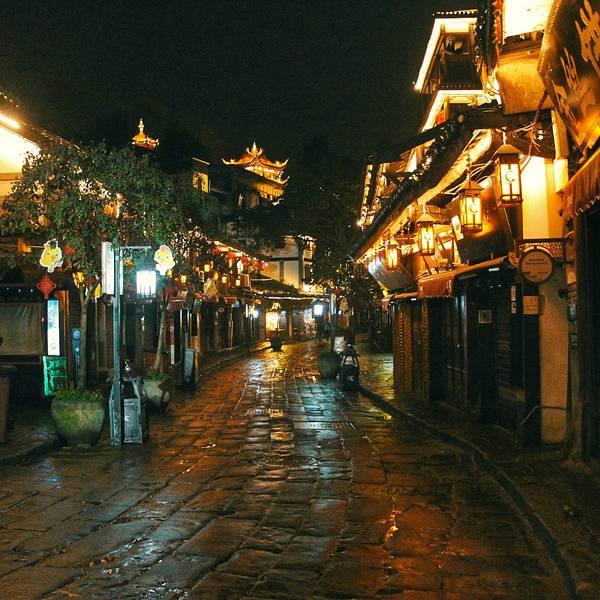 一条条古朴的石板路,仿佛龟背纹理,串起了风貌如初的街巷。许是岁月如流,沉浮至今,四下里玉壶光转,却透着一股洗尽铅华的气韵,尤其是在春雨浸润过的夜晚,过滤掉所有喧嚣,静谧得如同一块蓝宝石。就像那静静伫立的吊脚楼,一千年,一万年,风雨不动,默默地坚守着自己的故事。