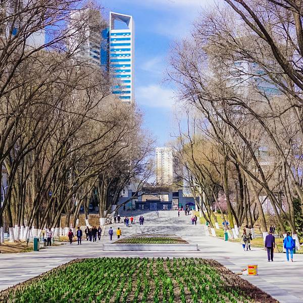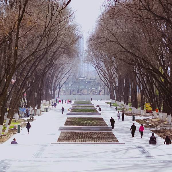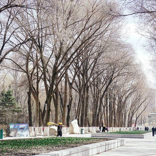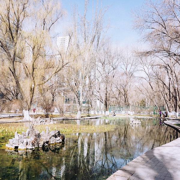 西宁 的人民公园其实就是个普通公园,只是去的那天又是一个晴空万里的日子,一进大门就把我震住了,恍惚以为自己身在 日本 ——虽然也并没有去过 日本 。公园里的人并不多,基本没有游客,都是本地人,像我这样的闲散人士真是少见,公园里挺拔的树,褐色的树干,不时还有些粉色,形成各种撩人的姿势,像是在大学校园中看见四个或六个一排的大学女生,气质各异,但清新扑鼻,我实在羡慕高原城市的人民有多么幸福,能在如此赏心悦目的气息里生活,快乐似神仙,不由想起顾城的诗来:
