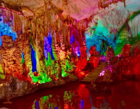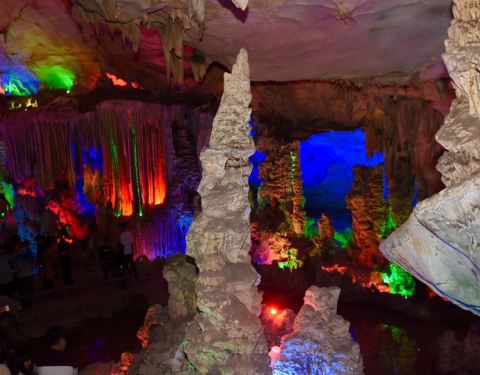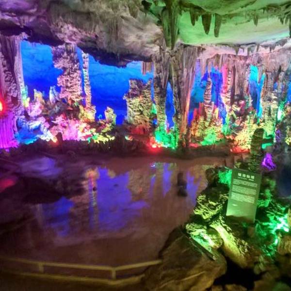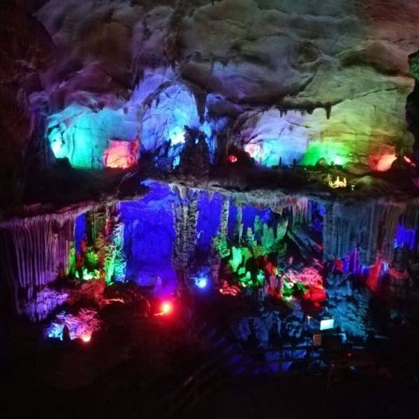 能看到石灰岩、沙页岩、花岗岩等形成的多种地质地貌,很壮观,适合拍照。 这里有多个溶洞,结合五彩灯光效果,看喀斯特地貌的奇观。