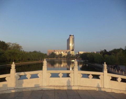 月湖公园位于市中心。公园好多棵梨花开的正旺。公园人出奇的少,非常幽静。看着公园的花不是很多。非常气派