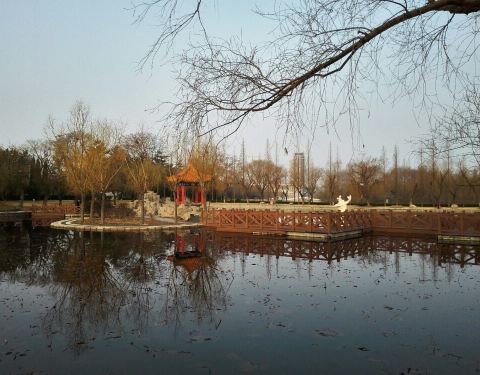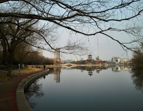 环境不错散散步跑跑步很安静很舒心大地方莱西比较著名的一个大众休闲的地方并且还不收费节假日很热闹冬天湖面结冰可以在上面走很刺激.