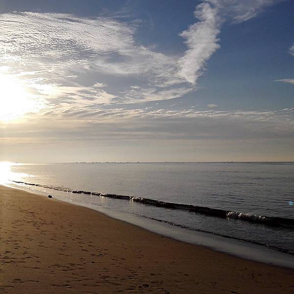 起早去海滩玩,阳...银滩沙子洁白如银,因而获得“银滩”之名,被誉为“天下第一滩”、“东方夏威夷”相传乳山有这样一个民谣:“东西两龙护,南边双珠守,北有三哨卫,神沙中央留。”可见乳山这块宝地是多么珍贵!