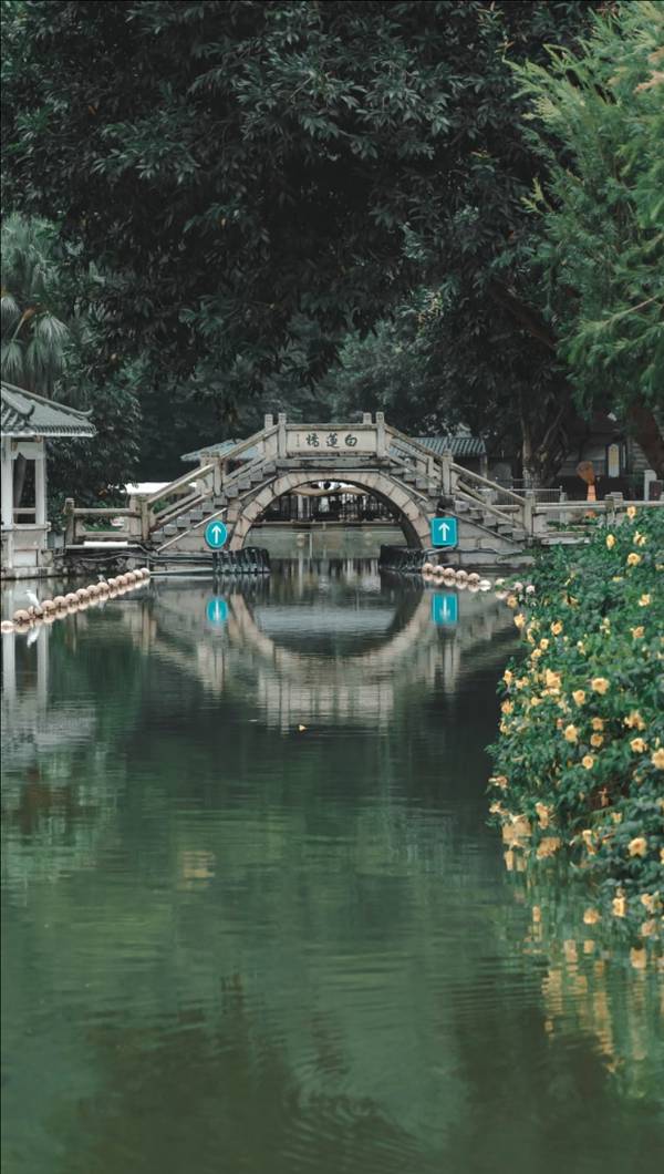 四季花香不断,莲韵与花景相映成画,高度契合“花”主题。公园以白莲为核心意境,夏季湖面白莲绽放,清香淡雅;湖边路旁三角梅、鸡蛋花、龙船花、山菊常年盛开,尤其园内拥有珠海少见的百年鸡蛋花古树群,花开时节洁白如雪、香气袭人。花卉沿湖岸、山道、庭院、亭台自然生长,与碧水莲湖、青山古洞、岭南古建完美相融,花香清新、光影柔和,文艺氛围感与出片率极高,让山水之旅也充满花间诗意。