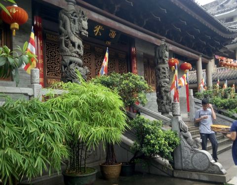 华林玉器街的一条小巷里面,门口不大,不过这个寺庙已经有很多年的历史了。相比香火很旺盛,有种闹中取静的感觉。