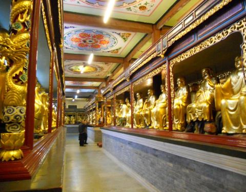 华林寺与华林玉器街相邻,玉石为寺院增添了超凡脱俗的宁静。寺内没有大雄宝殿,所以五百罗汉堂就成了主殿。进大门可见七层舍利塔,每层每面均有精致的花纹。