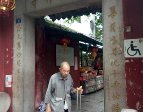 华林玉器街的一条小巷里面,门口不大,不过这个寺庙已经有很多年的历史了