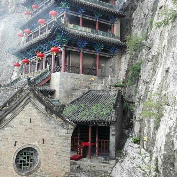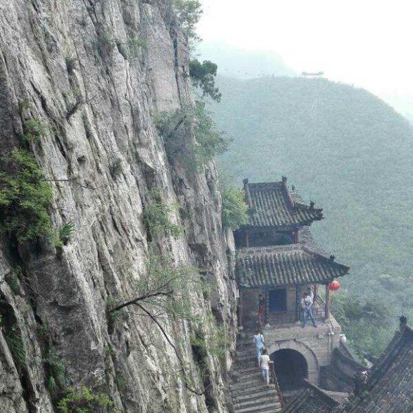 最惊艳的还是山上的娲皇阁!它是悬在悬崖上的样子,要不叫“吊庙”呢,不得不佩服古代工匠的智慧。阁里有好几层,每层的像不一样,碰到了来还愿的人,氛围很庄重。旁边的摩崖石刻也别错过,千年的文字刻在岩石上,哪怕有些字迹模糊,也能感受到历史的厚重。补天谷也可以逛逛,谷里绿树成荫,走在步道上特别凉快,上山选了索道,坐在上面能俯瞰整个景区,远山、古建、湖泊连在一起,视野特别好,也不累,下山做了滑车,挺刺激的。