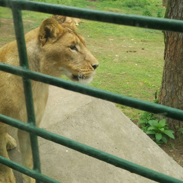 武汉市能观赏陆地动物的好象只有武汉动物园,九峰森林动物园了。经常去武汉动物园,还是第一次去九峰的动物园,它相对于前者来说,动物种类少些,但猛兽类,主要是狮、虎兽多些。。。。。。。。园区内,可以乘坐猛兽游览车进入猛兽观赏区近距离的观看猛兽,游览车为了吸引游客,还特地安排工作人员给猛兽喂食,那些狮,虎对喂食已非常习惯,站在固定的高台上等车经过,张开血盆大口,抢夺撕咬着肉食;;;也给鸽子、兔子、山羊、骆驼、鸵鸟、鸸鹋等动物纷纷喂食;我感兴趣的是看到了动物幼儿园好几只萌萌可爱的小黑熊、小老虎、还看到了少有的狮虎兽。。。。。。等等。也看了梦幻剧场中动物明星的才艺表演……