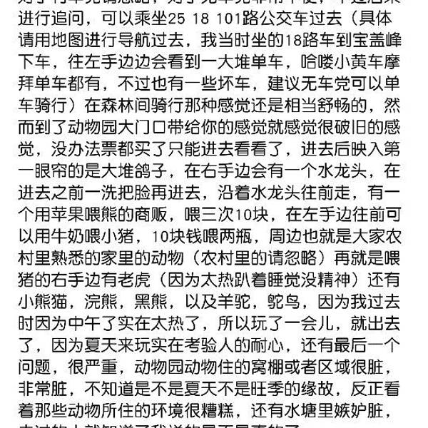武汉市能观赏陆地动物的好象只有武汉动物园,九峰森林动物园了。经常去武汉动物园,还是第一次去九峰的动物园,它相对于前者来说,动物种类少些,但猛兽类,主要是狮、虎兽多些。。。。。。。。园区内,可以乘坐...