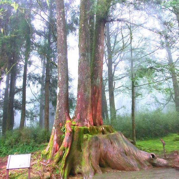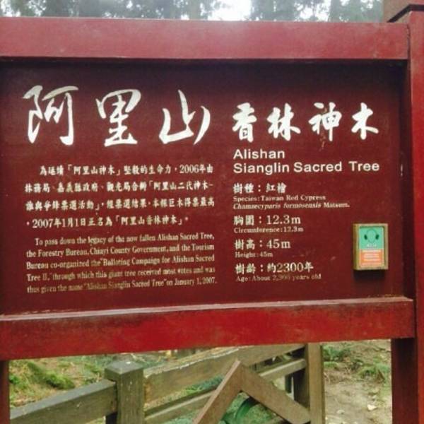 最出名的阿里山神木树高53米,有三千多年历史,是著名的亚洲神木,红桧树种。刚进景区的纪念碑火车道阿里山小火车从这里下车,车站也很好看4月花开火车站阿里山海拔高,湿度大,一路都是这样雨雾缭绕,跟仙境似的。山花烂漫好大雾,空气非常好。树特别高,阿里山的桧木很出名旋转了一下镜头树洞青苔姊妹湖盘根错节的树根旁边是人影,看得出树有多高了。好多年的树根阿里山最高学府国民小学阿里山神木53米的阿里山神木午饭在山上吃的各个景点的接驳车是个很值得去的地方,阿里山神木真的好美。 展开