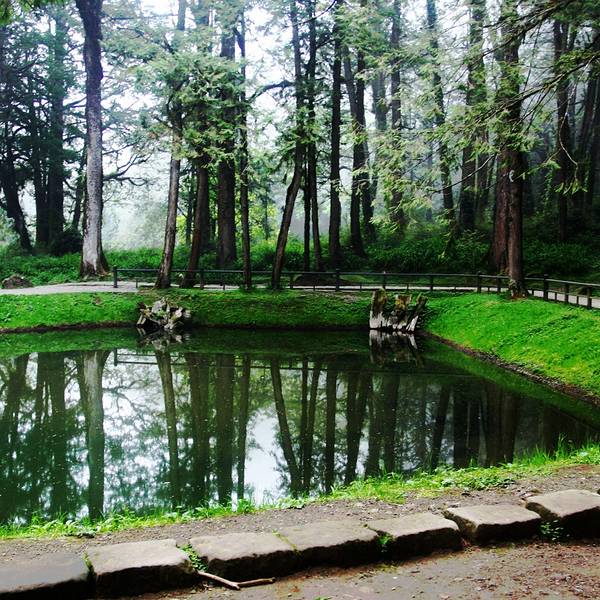 游览路线是从沼平车站出发,经由姊妹潭、受镇宫,然后到达巨木群栈道,最后返回到阿里山车站。出了车站,天空已经完全明亮,心情一片舒畅,然而清晨的低温却在下一刻将衣衫单薄的我拉回现实,真的好冷。所以看日出一定要穿得严实,不然就只能挨冻啦~~走过阿里山阁大饭店后,就能看到森林步道的入口。我觉得漫步在步道是一次难得亲近自然的机会,习惯在城市水泥路上疾行的我们在这里接受心灵的“慢”修行,慢慢地欣赏形状各异的林木,反之,走马观花地掠过是一种浪费,一种亵渎。平时羞于在大众面前表现的你也可以边走边哼唱着熟悉的曲调,放开自我,不必陷入拘谨。阿里山的姊妹潭是两个大小不一而邻近的湖泊,周围有长180公尺的环潭步道。潭水清澈,能清晰地倒映出树林天空的像。潭上有两座桧木大树头根为基,稻草为顶的小亭,驻留亭间,环顾四周,景色着实宜人。神木火车站此时比较冷清,因为从阿里山车站及照片车站没有到达神木车站方向的火车,只有神木车站到阿里山车站的单向,正常路线是游客们从沼平车站出站后徒步下到神木车站,再从这里乘火车返回到神木车站,而我们的脚程比较快,领先于大部分游客。阿里山巨木群栈道可以说是阿里山森林游乐园里最大的亮点,古老的巨木群,天然的氧吧,视觉与嗅觉的完美体验。走在林间,会觉得人显得很渺小,四周都是7,8米以上的树木。岁月更迭,它们经历了多少个次四季变换,摸一下那粗壮的躯干,闭上眼,仿佛感受到时间长河的流淌。 展开