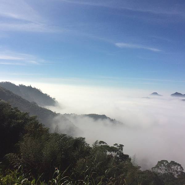 3点半左右被座机叫醒后,我们洗漱一番,便立马赶到阿里山车站购票。此时,不少游客都已经聚在车站大厅,虽天依旧是漆黑一片,但热闹的喧嚣却打破黑夜的寂静。在我们面前的排队人群,估计有100多号。大家都期盼着快点乘山阿里山小火车,时不时注意车站动态。到阿里山最期待看到的自然是阿里山日出。上到观景点,大家一字排开占满了栏杆,拿出手机记录日出的全过程。4点半左右,天微亮,能清楚地看到天空,那柔和的天空蓝感觉好温暖!不过,当时,条状的云朵分散在天上,调皮地遮住了升到空中的太阳,视觉效果上看,只能看到云层中的一个发光的小亮球。没有想象中太阳从水平线出来,散发万丈光芒的那番壮观,却也没白费起早贪黑的辛苦。