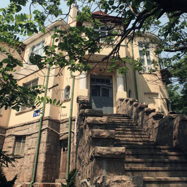 洪深故居位于八关山麓福山路1号。1934年洪深来青岛接替梁实秋任山东大学外文系主任时在此居住。洪深的父亲洪述祖来青岛曾有别墅,名“观川台”,但被日本统治者没收。洪深租宅于此。他结合家庭遭遇及当时青岛的屈辱史,创作了中国第一部电影文学剧本《劫后桃花》,由当时的明星公司拍摄,由电影皇后胡蝶主演。 我很喜欢房子前的那段台阶。