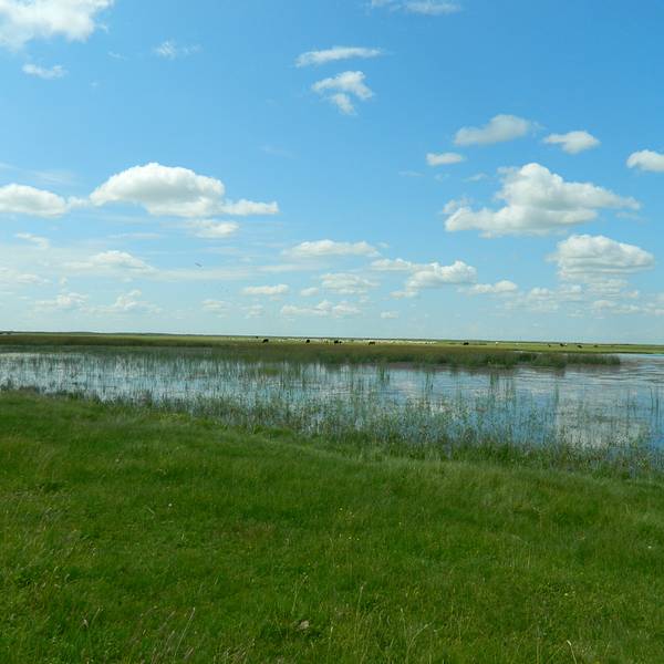 在满洲里至黑山头镇之间,904县道186公里石碑处,有一片很美的湿地,前提是天气要好。